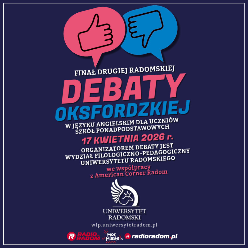 Już za tydzień – 17 kwietnia 2026 r. o godz. 10:00 – odbędzie się Finał Drugiej Radomskiej Debaty Oksfordzkiej w języku angielskim!